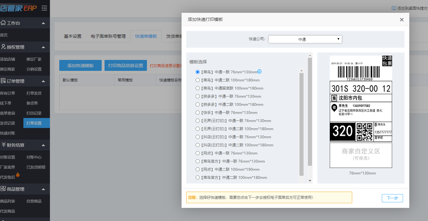 添加好之后,设置快递单模板就好了。当然还可以设置发件人信息等相关操作。