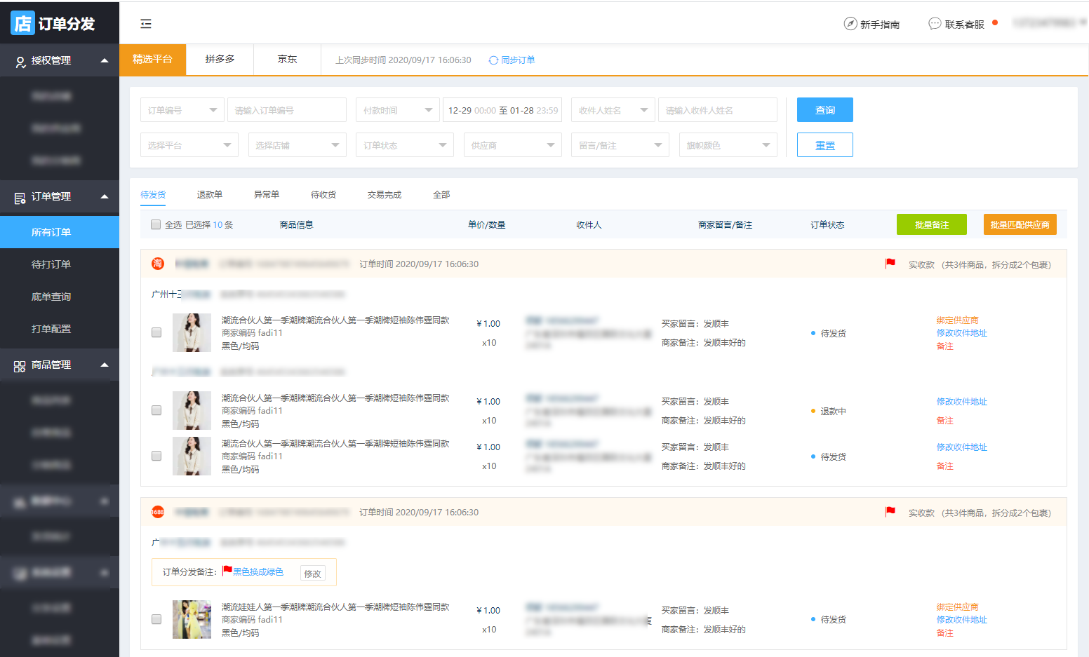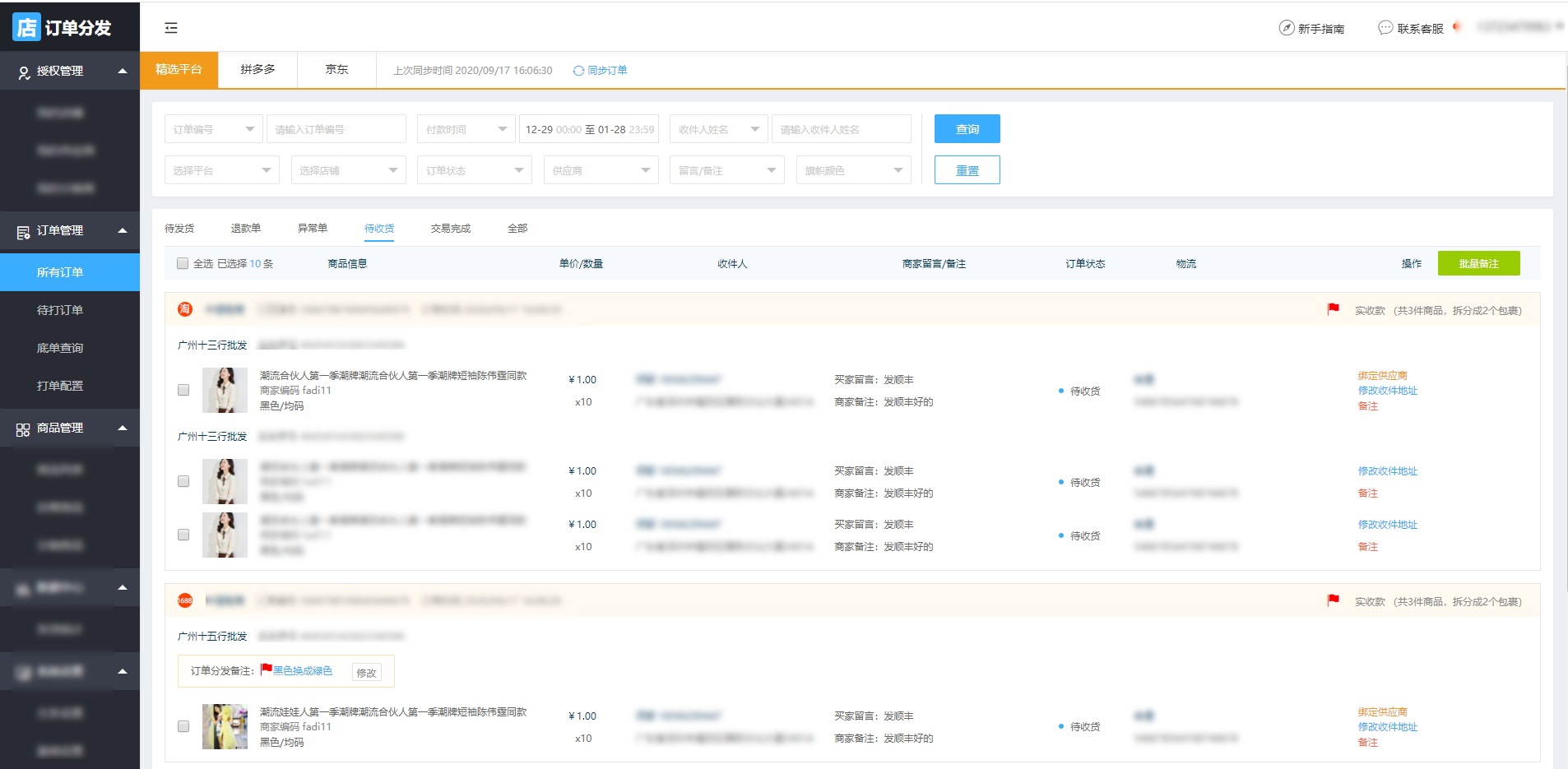 第四步:分销商同步店铺订单。系统订单会自动同步到供应商。