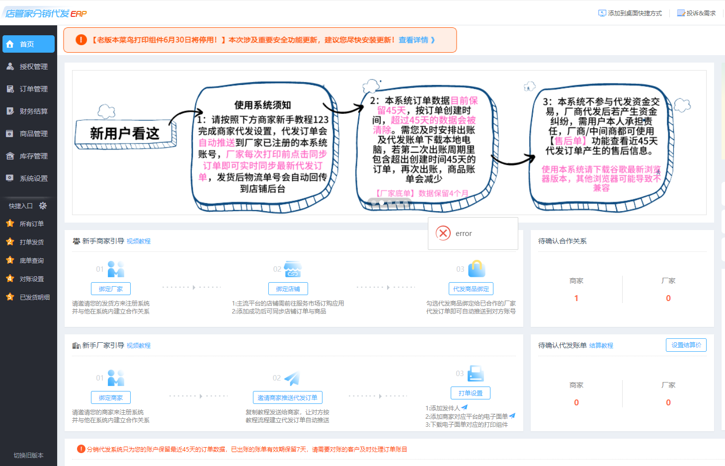 手小店新手商家怎么让厂家代发?快手小店无货源商家前期开店都选择一件代发,无需囤货,店铺有订单后找厂家代发。当店铺订单种类增多,多个商品有多个供应商代发,可能还会有部分线下手工订单需要推送给厂家,代发后需要长时间核对账单等等,单靠手工传送表格订单信息已经不再适用,现在需要一款专业的分销代发软件来替代手工操作。